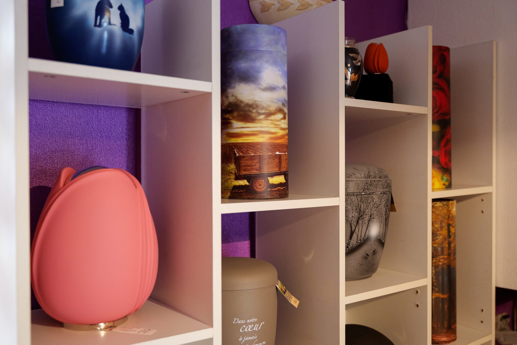 - – les articles : cercueil, capiton, urne, fleurs, plaques;